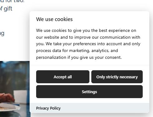 Cookie banner in the online shop