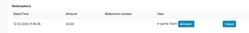 The Backdated option cancels the redemption with effect from the day on which the redemption was made. If the redemption did not take place in the current month, the voucher archive is updated automatically. This option cannot be used if the voucher was redeemed on the day of cancellation, or if the voucher was issued with the payment method set to Complimentary. If it is a group voucher, the redemption can be cancelled backdated, as long as the redemption was made in the current month.