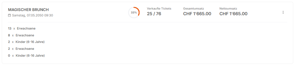 The dashboard provides a constant overview of your ticket sales.